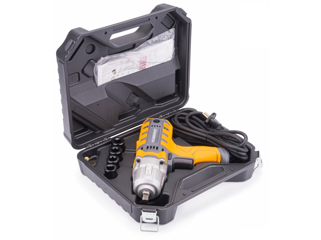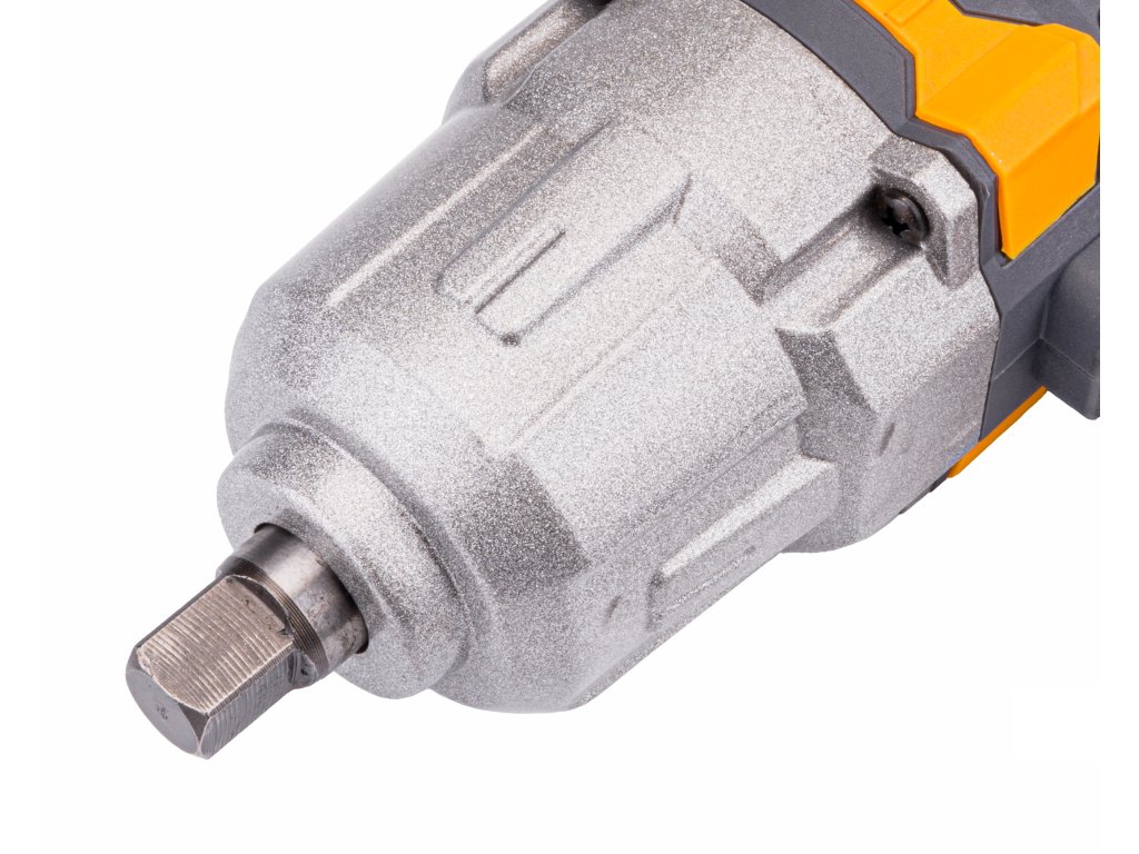 Дръжката и част от корпуса са покрити с нехлъзгаема гума, осигуряваща здрав захват дори при тежки условия. Добре балансираният дизайн с център на тежестта в средата на инструмента предпазва китката от претоварване. Гайковертът се доставя в практичен и здрав куфар, който улеснява транспортирането и съхранението.