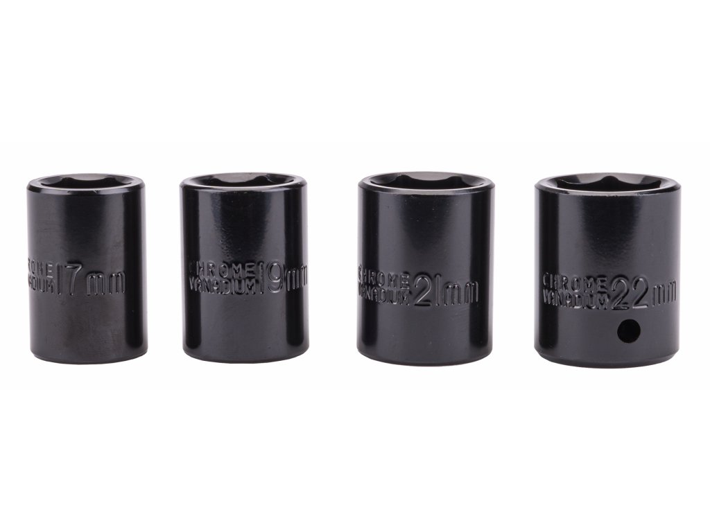- Четири ударни вложки от хром-ванадиева стомана (17, 19, 21, 22 мм)