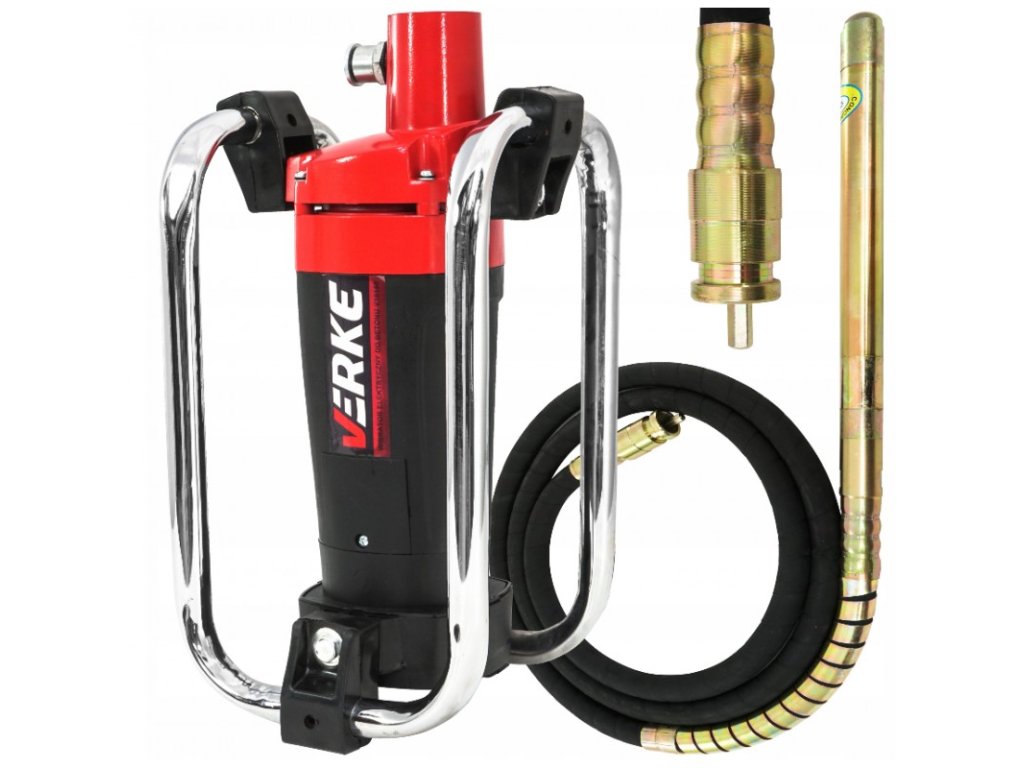 Електрически вибратор за бетон 1600W 38мм x 4м Verke V10150 е устройство, предназначено за уплътняване на бетонната смес, с цел постигане на максимална спойливост и хомогенност. Той уплътнява сместа чрез изтласкване на вода от пространството между зърната на агрегата, които при изсъхване оставят празни места. Вибрацията в бетона се постига чрез потапяне на вибратора до желаната дълбочина. Смята се, че ефективно уплътнената зона на бетона е около 15 пъти диаметъра на вибратора. Тези вибратори най-често се използват за вибриране на стени и колони. Устройството разполага с голяма и удобна ръкохватка, поставена на гумени амортисьори, които намаляват вибрациите, предавани на ръцете и ръцете на оператора.