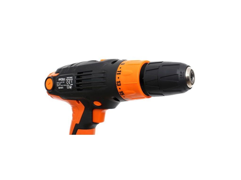 | Спецификации: • Марка: KRAFT&DELE • Модел: KD1673 • Тип устройство: електрическа бормашина/шуруповерт • Захранване: 230V / 50Hz • Мощност: 880 W • Брой скорости: 2 • Брой обороти: 0-450 об./мин(I), 0-1350 об./мин(II) • Максимален въртящ момент: 18/30 Nm • Настройка на въртящия момент: 17+1 • Обхват на патронника: 10 мм • Посока на завъртане: наляво/дясно • Тегло на устройството: 1,5 кг |