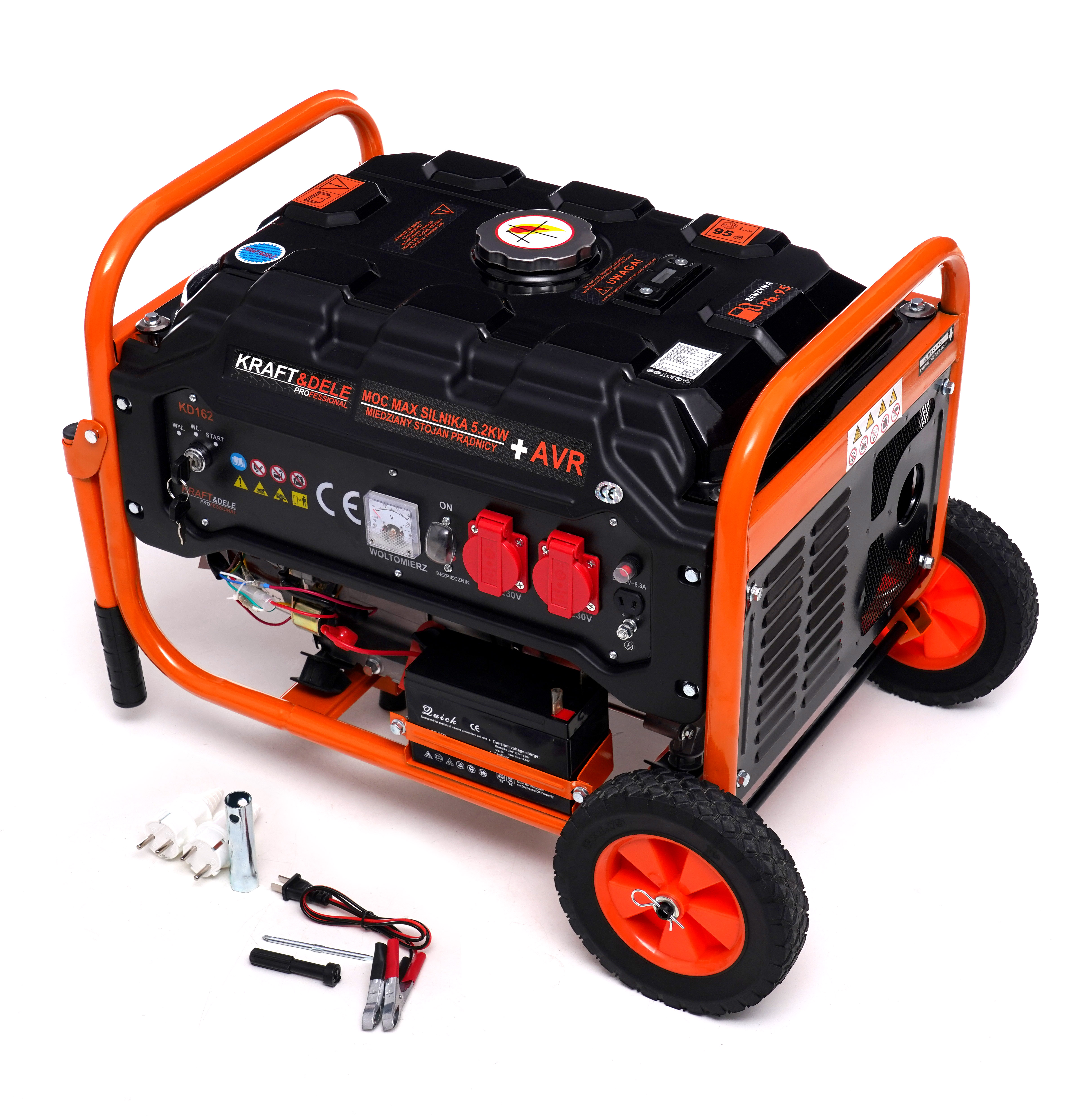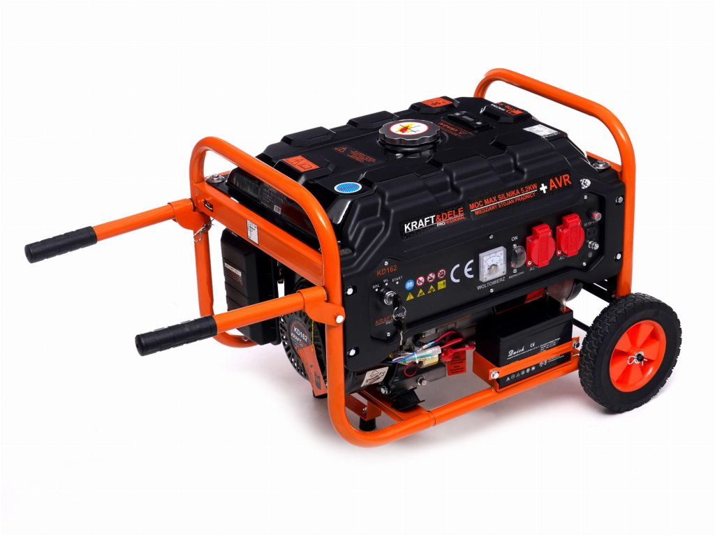 Преносим еднофазен електрогенератор KD162 на марка Kraft&Dele е предназначен за производство на променлив ток 220V–230V чрез японски четиритактов двигател OHV с мощност 7 HP/5,2 kW и номинална мощност на алтернатора 2800W.