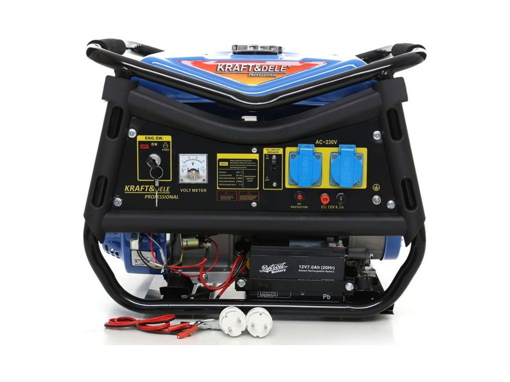 Преносим еднофазен електрогенератор под марката KD143 на Kraft&Dele е предназначен за генериране на променлив ток 220V–230V чрез четиритактов двигател с японска OHV конструкция с мощност 7 HP и максимална мощност на генератора 3000W.