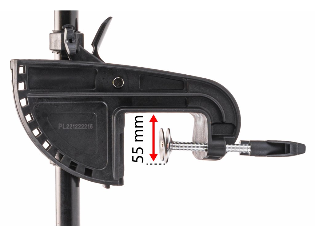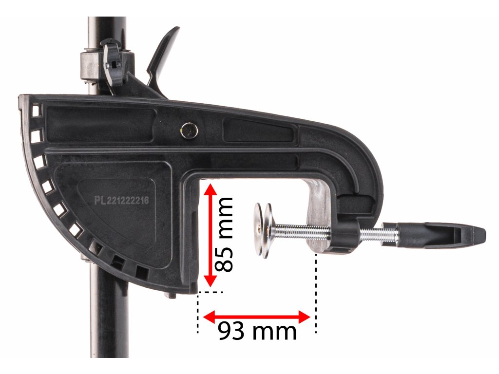 Регулируемата монтажна стойка (транцова стойка) позволява лесно закрепване на двигателя към надуваема лодка или малък плавателен съд с максимална височина на транца 86 см.