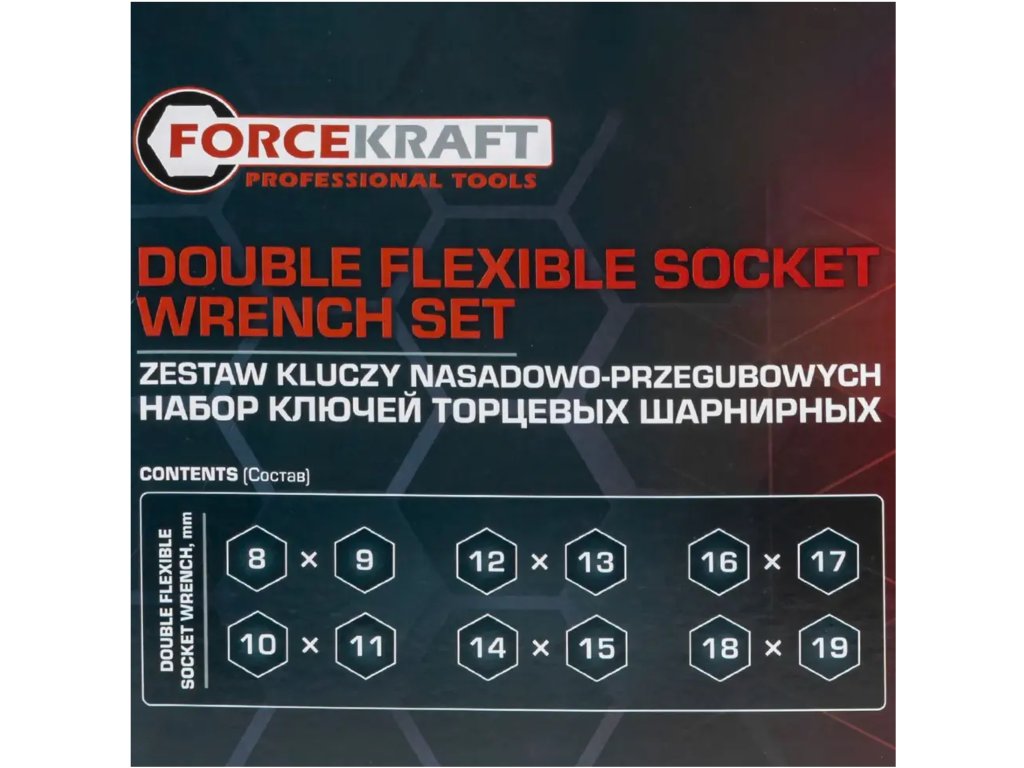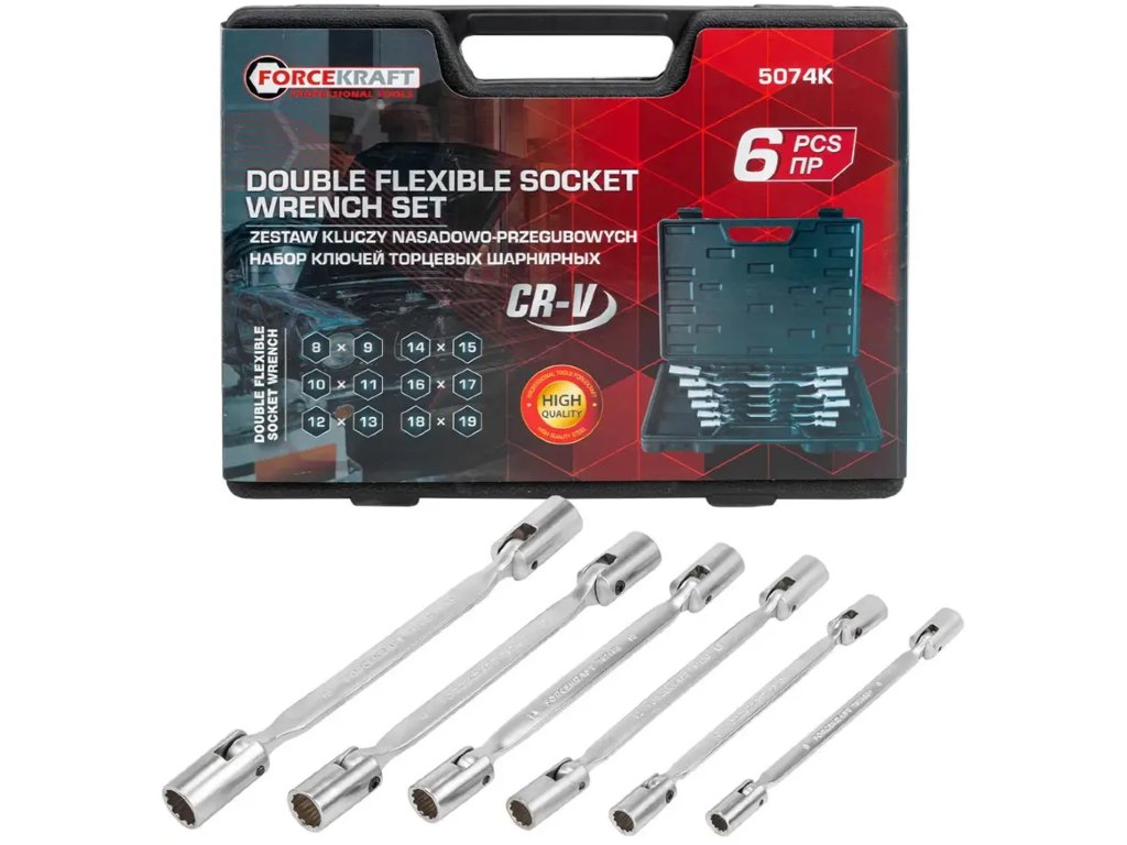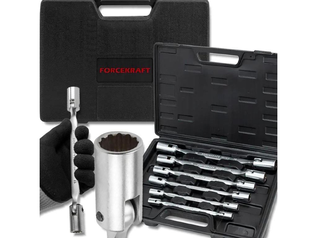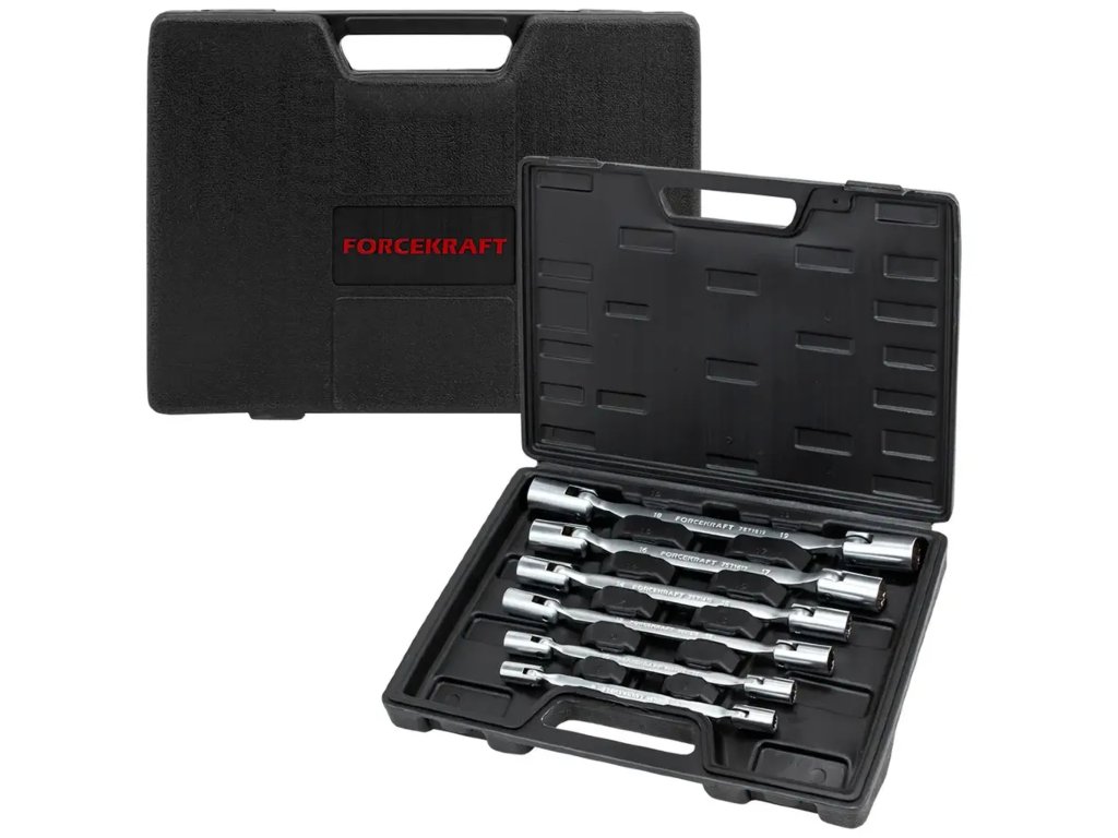 Професионален комплект двустранни вложки с шарнир от марката Forcekraft е незаменима част от всеки сервиз – както професионален, така и домашен. Благодарение на своята гъвкавост и здрава конструкция, комплектът е идеален за работа с крепежни елементи на труднодостъпни места, където традиционните инструменти се провалят.