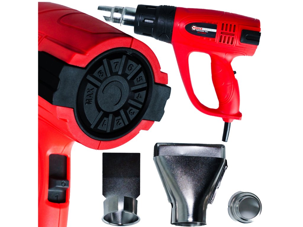 Електрическият индустриален пистолет с горещ въздух FORCEKRAFT е издръжлив инструмент за работа, изискваща прецизно нагряване или бързо сушене. Благодарение на 3 режима на работа, керамична изолация, защита от прегряване и включени дюзи, той е идеален за работилницата, строителството, автосервиза, както и за домашна употреба.