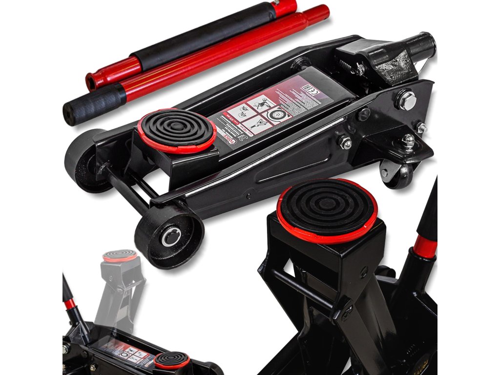 Оборудван е с гумирана противоплъзгаща подложка, предпазен вентил против претоварване, въртящи се колела и мощна хидравлична единица — незаменим инструмент за всеки механик и автомобилен ентусиаст.