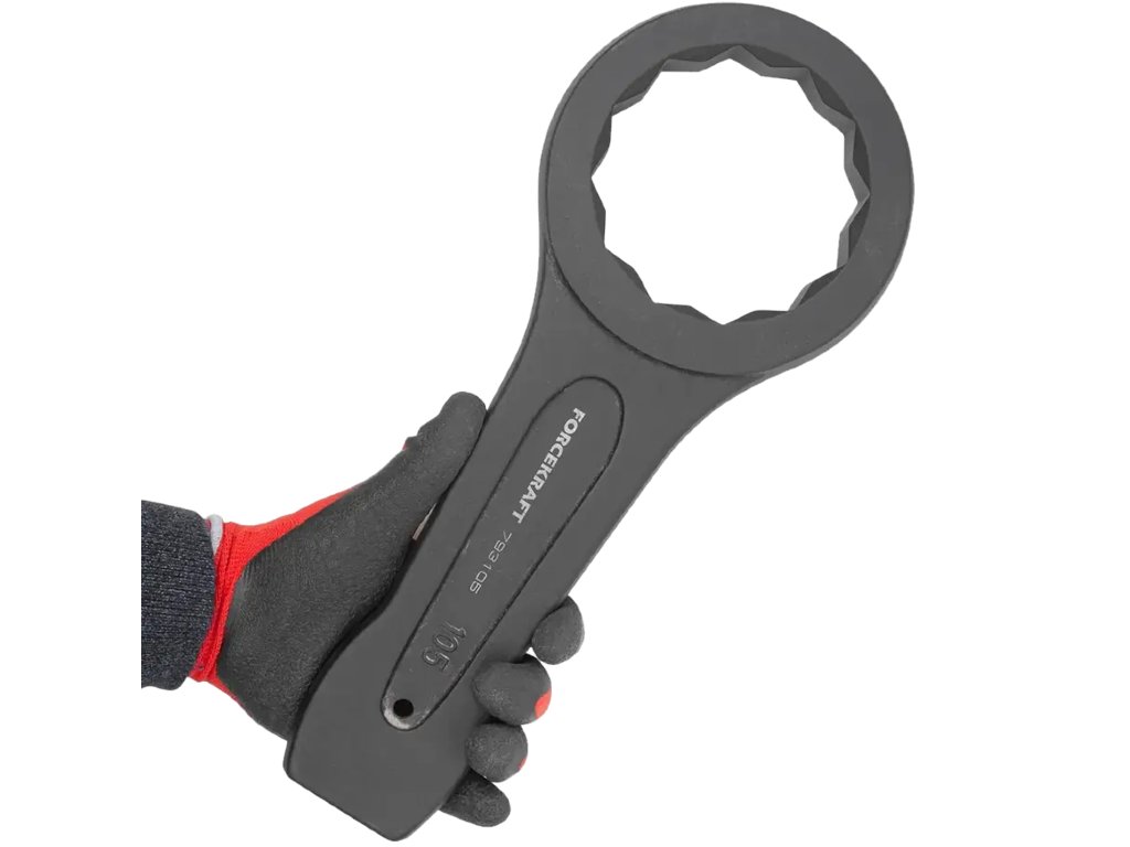 Рабозната повърхност на ключа е пригодена за директен удар, което позволява ефективно разхлабване или затягане на резбови съединения с минимални усилия от страна на потребителя.