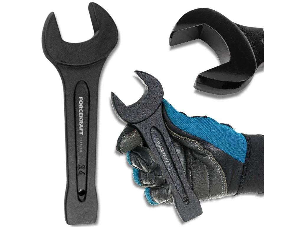 Ударен плосък ключ FORCEKRAFT 34 мм, който няма да ви подведе дори при най-тежки условия. За големи болтове, големи сили и голяма отговорност.