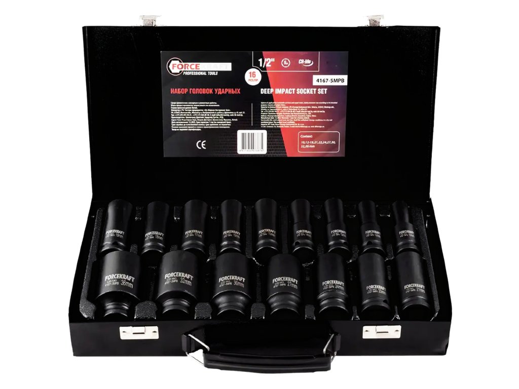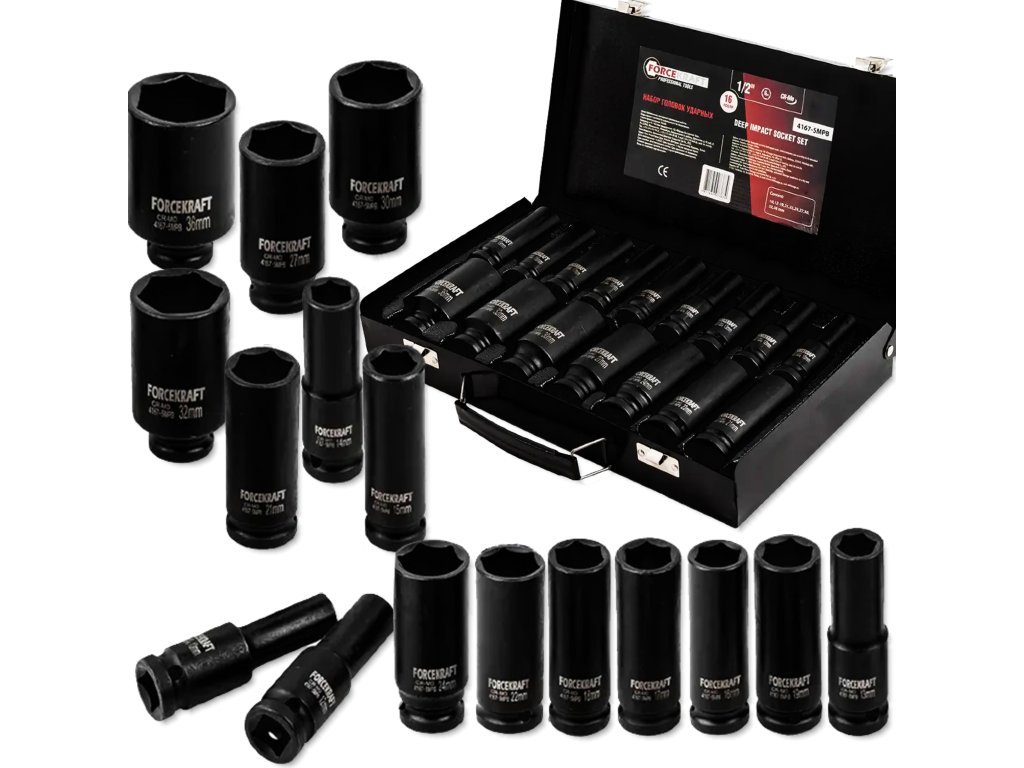 Търсите издръжлив комплект ударни вложки, който може да се справи с най-взискателните задачи в работилницата? Forcekraft FK-4167-5MPB е комплект от 16 удължени ударни вложки 1/2", проектиран за работа при високо натоварване – както в автосервизи, така и в домашни гаражи.