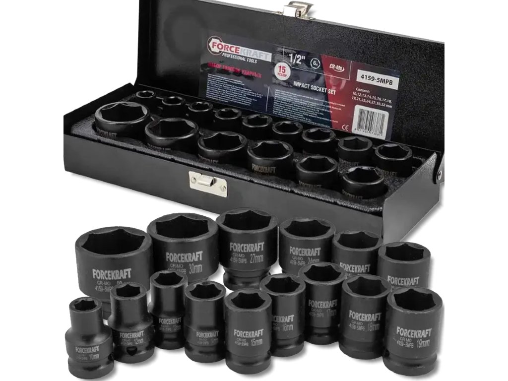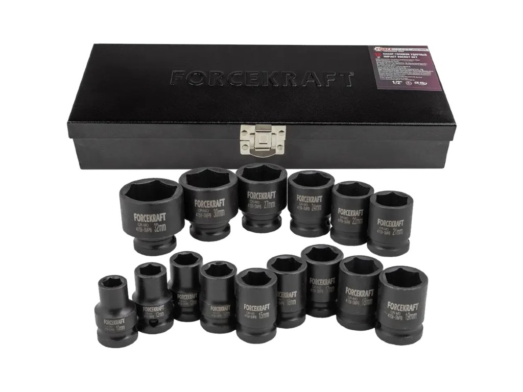 Forcekraft комплект ударни вложки 1/2" 15 бр., 6-стенни (10-32 мм)