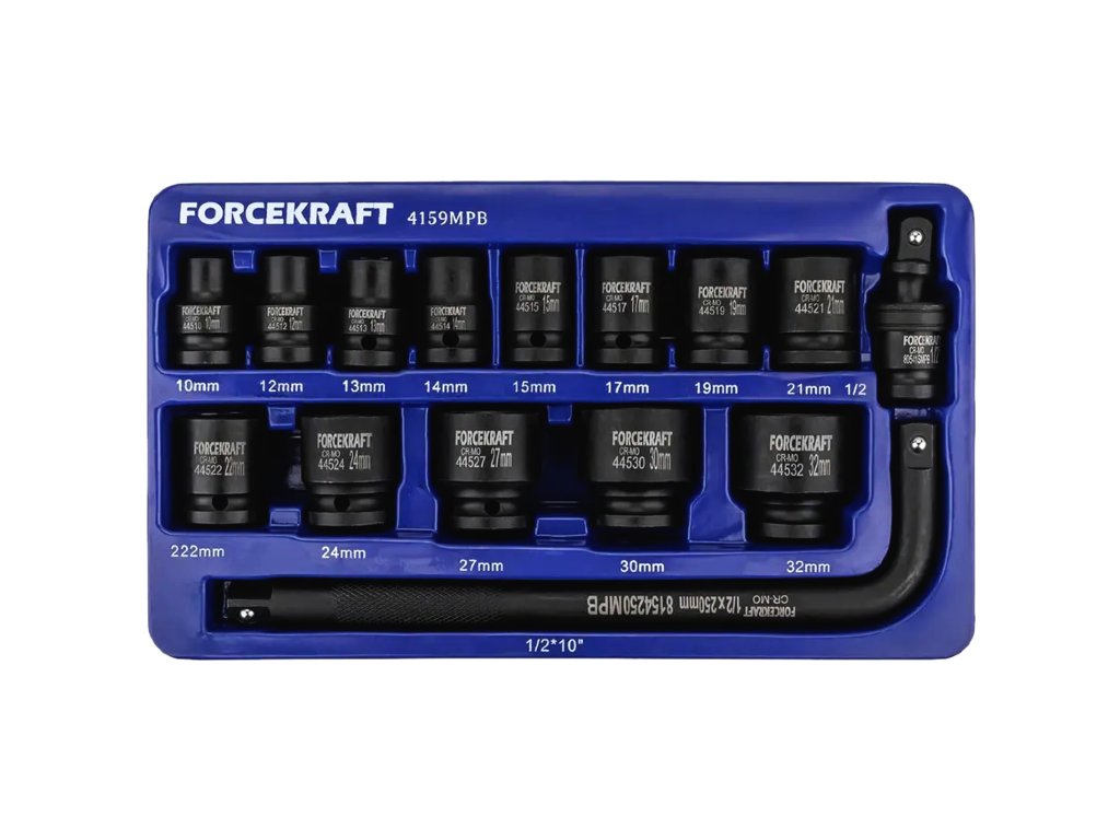 Комплектът от FORCEKRAFT е отлична комбинация от качество и функционалност, която не бива да липсва в професионален работен шкаф. Ударните вложки са изработени от високоякостна CR-MO стомана, устойчива на напукване, усукване и екстремни механични натоварвания. Благодарение на прецизния шестостенен профил, те прилягат плътно към главите на болтовете и гайките, което елиминира риска от изплъзване и повреда.