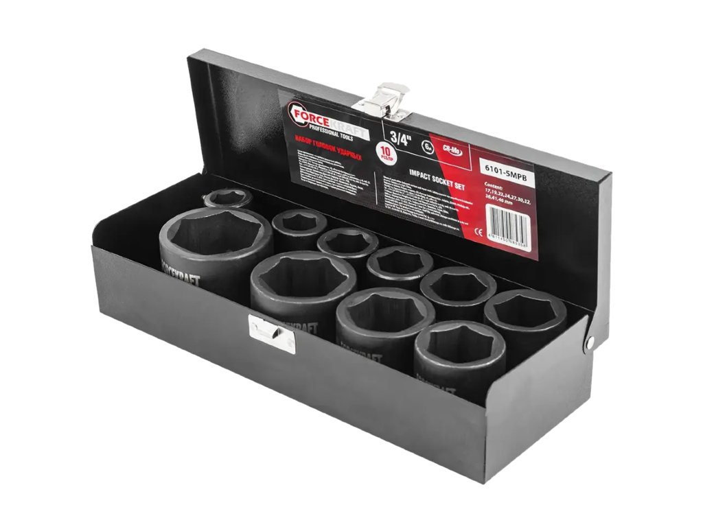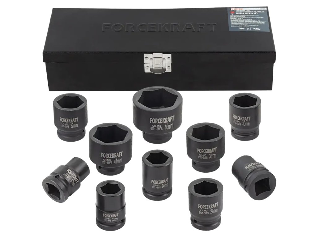 FORCEKRAFT Комплект ударни вложки 3/4" 10 бр., шестостенни (17–46 мм)