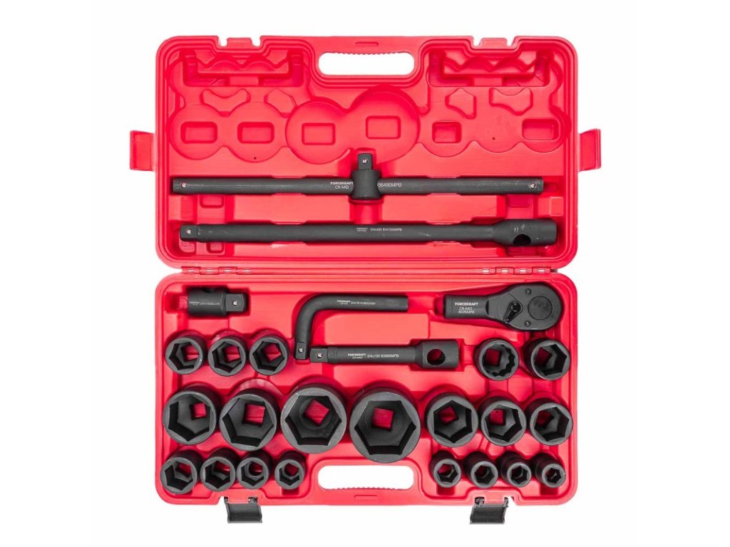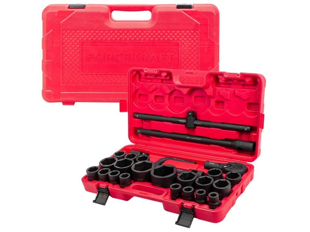 Търсите надежден комплект инструменти с висока производителност за работа с много затегнати болтови връзки? Forcekraft FK-68262-5MPB е професионален комплект ударни вложки с размери 3/4" и 1", проектиран за работа при най-взискателните условия – в тежката промишленост, селското стопанство, сервизи за товарни автомобили и технически работилници.
