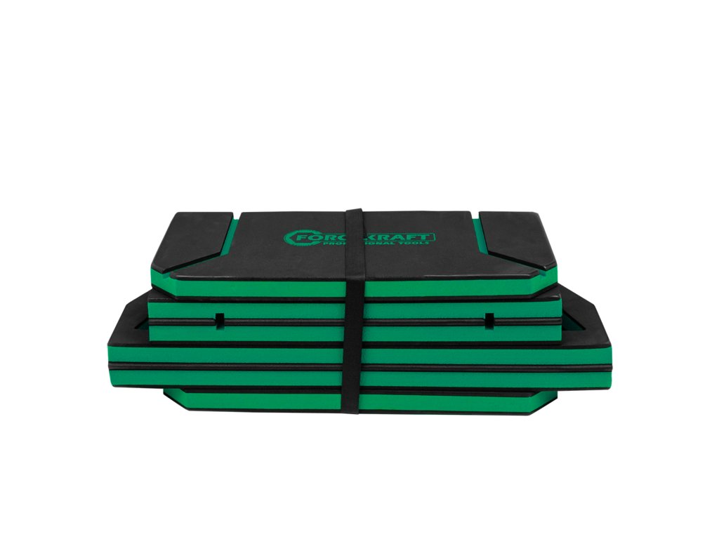 Сгъваемата работна подложка Forcekraft е универсален помощник за всеки, който работи по автомобили, в градината, в гаража или при домашни ремонти. Благодарение на високата си устойчивост на масло, бензин и вода, тя е подходяща както за интензивна работа в работилница, така и за спешни ремонти на терен.