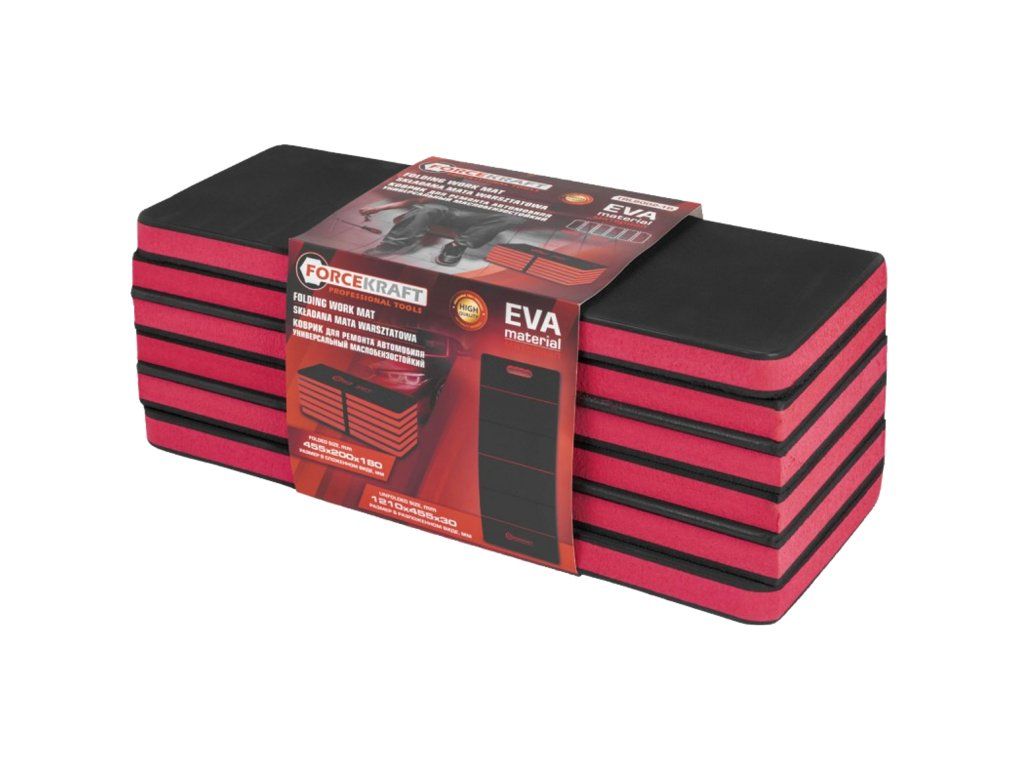 Сгъваемата подложка за работилница Forcekraft е универсален помощник за всеки, който работи по автомобили, в градината, в гаража или при домашни дейности. Благодарение на високата си устойчивост на масло, бензин и вода, подложката е подходяща както за интензивна употреба в работилница, така и за спешни ремонти на терен.