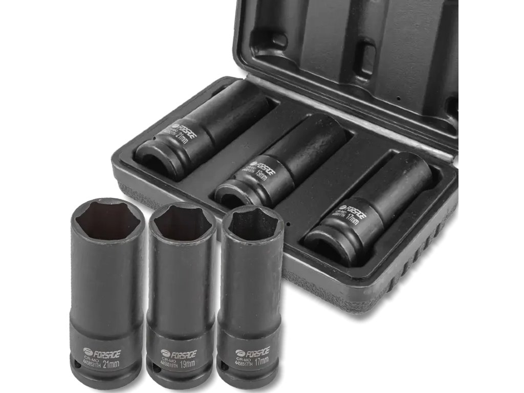 FORSAGE Комплект тънки ударни вложки 1/2", 6-стенни, 3 бр.