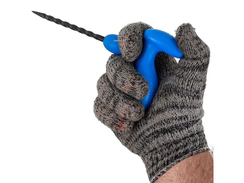 Спираловидното шило за ремонт на гуми е специализиран инструмент, предназначен за бързо и ефективно почистване на пробиви и подготовка на отвора за поставяне на ремонтна лента. Подходящ за леки и товарни автомобили, мотоциклети, четириколки и градинска техника.