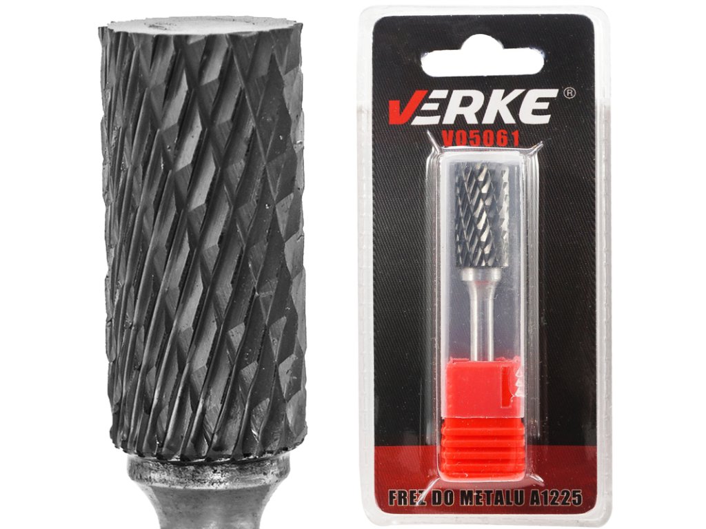 Фреза за метал A1225 VERKE V05061 е оборудвана с двойни кръстосани режещи зъби, предназначени за универсална употреба. Създава къси стружки, които се отстраняват лесно и осигуряват равномерна работа при обработка на пластична стомана. Идеална за оформяне, изглаждане и премахване на материали като: закалена стомана (HRC65), неръждаема стомана, чугун, цветни метали, керамика, пластмаса, дърво. Фрезата е изработена от волфрамов карбид, тази комбинация се характеризира с най-високата известна температура на топене (6000 °C) и изключителна здравина.