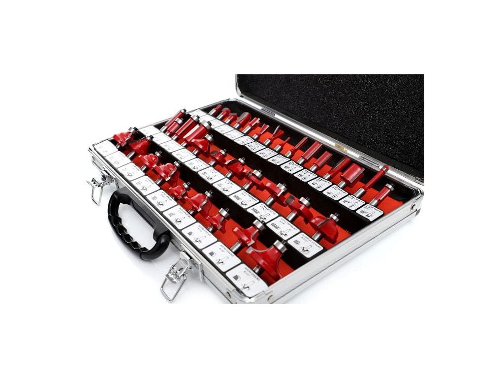 21 fréz má ložiskování, snižující tření a velmi tvrdou čepel z wolframového karbidu. Sada frézů je uložena v profesionálním kufru, každá fréza má své označené místo.