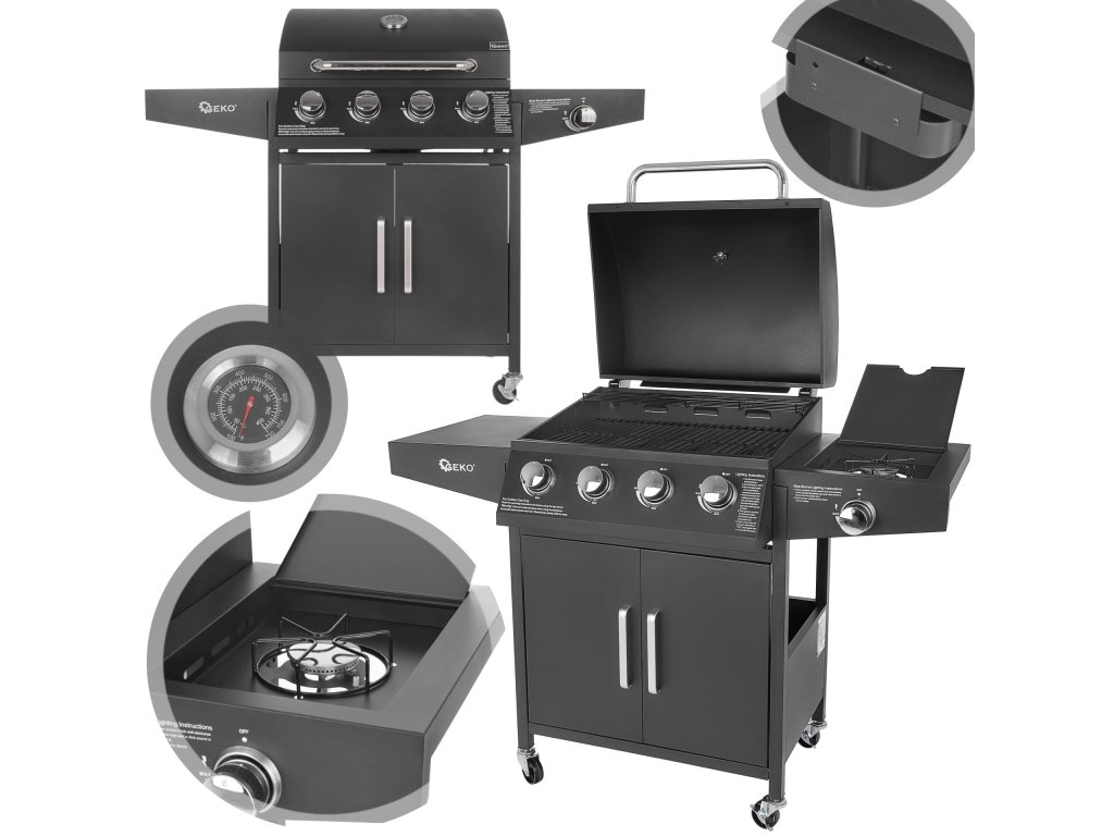 Универсалност при готвене на скара: Газовият грил разполага с четири основни горелки, които разпределят топлината равномерно. Освен това има и горелка за тенджера или чайник, което ви позволява да готвите и печете едновременно. Без ограничения за вашата кулинарна фантазия!