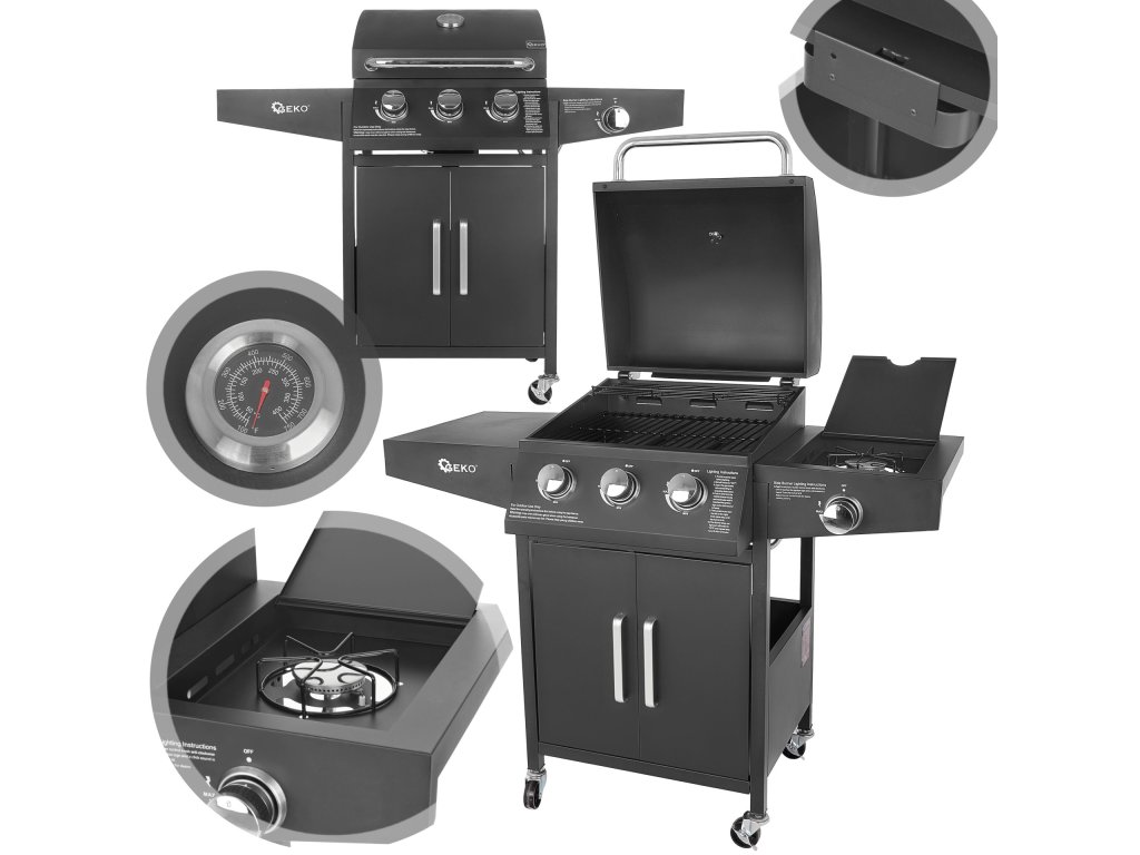 Универсалност при гриловане: Газовият ни грил е оборудван с три основни горелки, които осигуряват равномерно разпределение на топлината, както и с горелка, предназначена за тенджера или кана. Това означава, че можете едновременно да гриловате и готвите любимите си ястия. Без кулинарни ограничения!