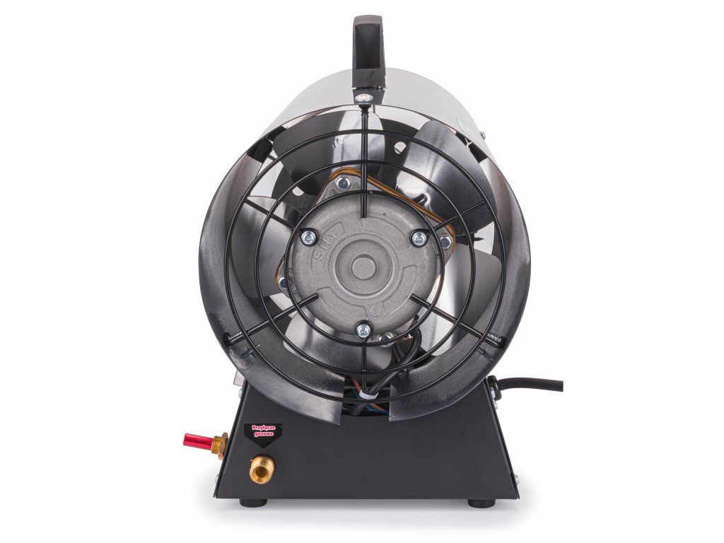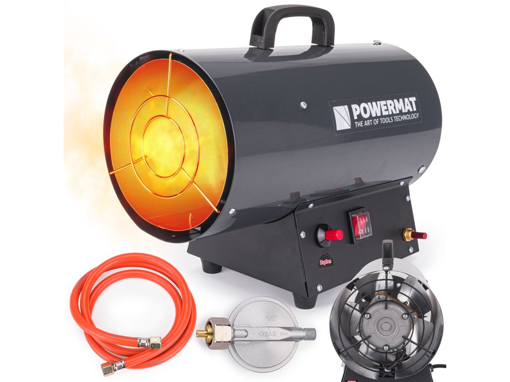 Отоплителят може да бъде свързан към 5 или 11-килограмова пропан-бутанова газова бутилка, което го прави идеален избор за отопление на работилници, халета, складове и други пространства.