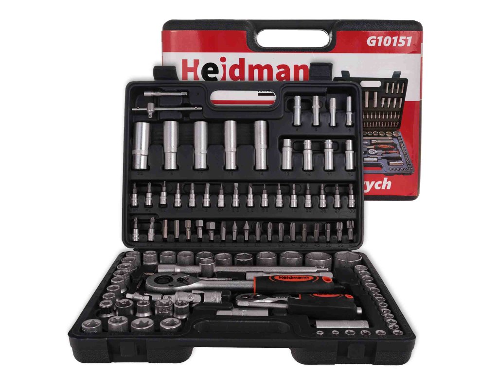 Гедоре комплект 108 части 1/4", 1/2", торкс, тип H G10151 е идеалното решение за разнообразни ремонтни и монтажни работи. Всички инструменти са изработени от висококачествен хром-ванадиев инструментален метал, което гарантира дълъг живот и устойчивост.