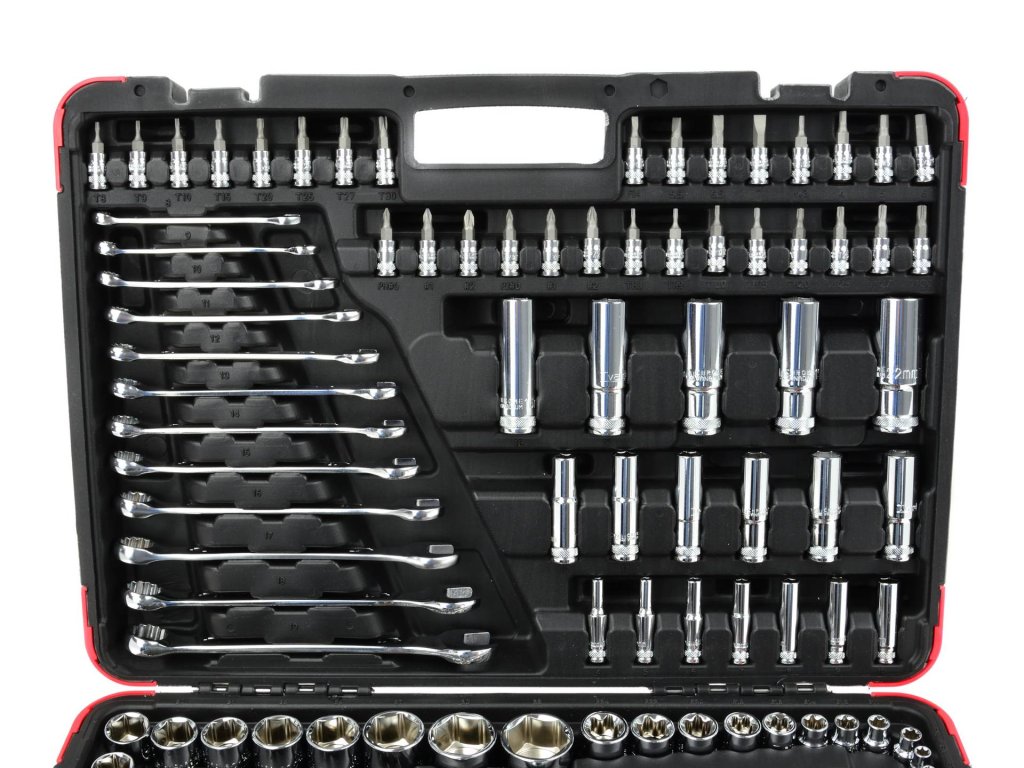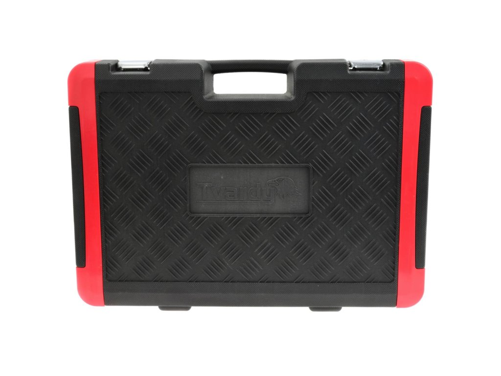 Професионален комплект гедоре 216 части Гедоре комплект 216 части 1/4" 3/8" 1/2" 25 години гаранция T00103 от марката TVARDY е перфектният избор за всеки, който търси качество и надеждност. Всеки накрайник е изработен от висококачествен хром-ванадиев CRV50BV30 стомана, а битовете – от подсилена S2 стомана. Комплектът включва три тресчотки (1/2", 3/8" и 1/4") с изключително здрав тресчотен механизъм с 72 зъба. Цялото оборудване е удобно подредено в практичен и здрав пластмасов куфар и е покрито с 25 години гаранция.