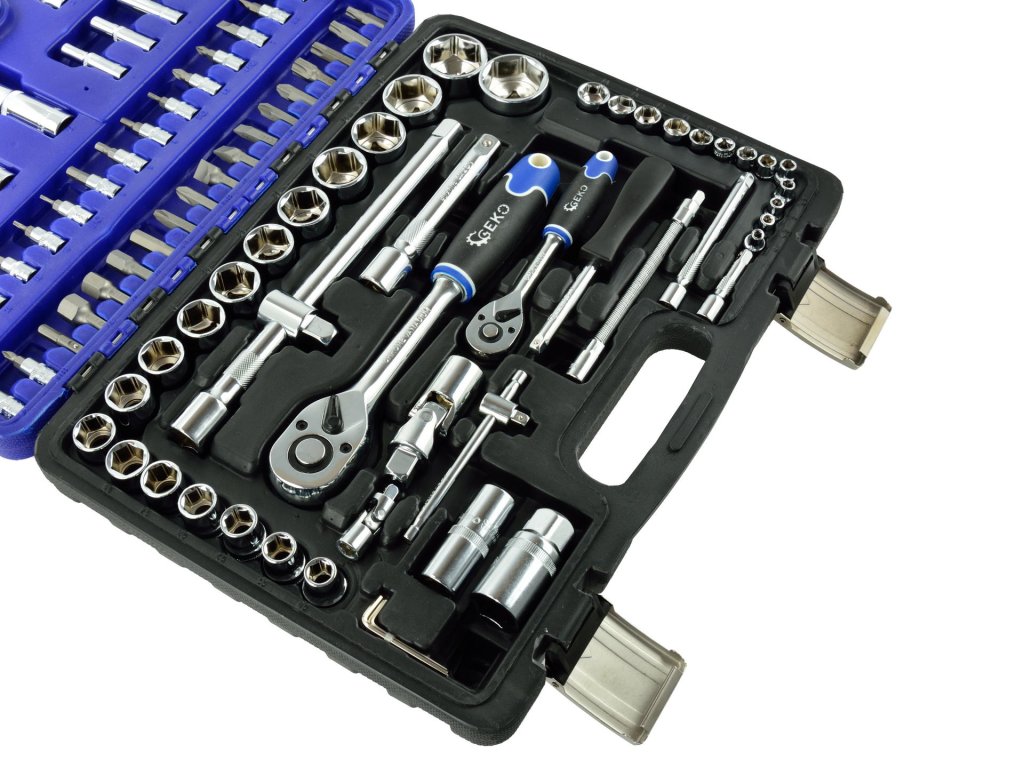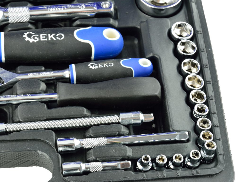 Гедоре комплект 94 части CRV GEKO G10100 е универсален комплект, идеален за автосервизи, работилници и домашна употреба. Ключовете са изработени от висококачествен хром-ванадиев сплав, осигуряващ дълготрайност и издръжливост.