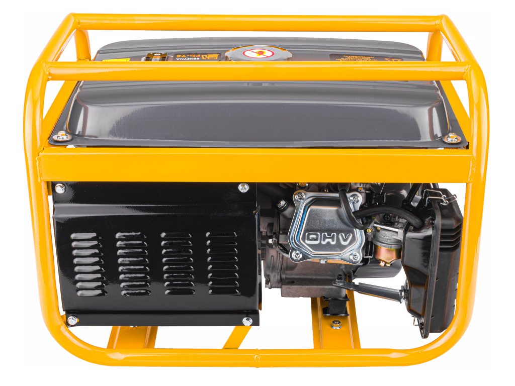 Генераторът произвежда променлив ток с напрежение 230V (3 гнезда) и постоянно напрежение 12V (1 гнездо). Той е идеалното решение при липса на електричество на открито. Оборудван с волтметър и предпазители, генераторът разполага със сензор за нивото на маслото, който автоматично изключва двигателя при твърде ниско ниво. Стартирането на генератора е ръчно с помощта на въже за пускане. Този генератор е предназначен за използване в занаятите, строителството, на дворове и градини, като идеално захранва електроинструменти, помпи и осветление.