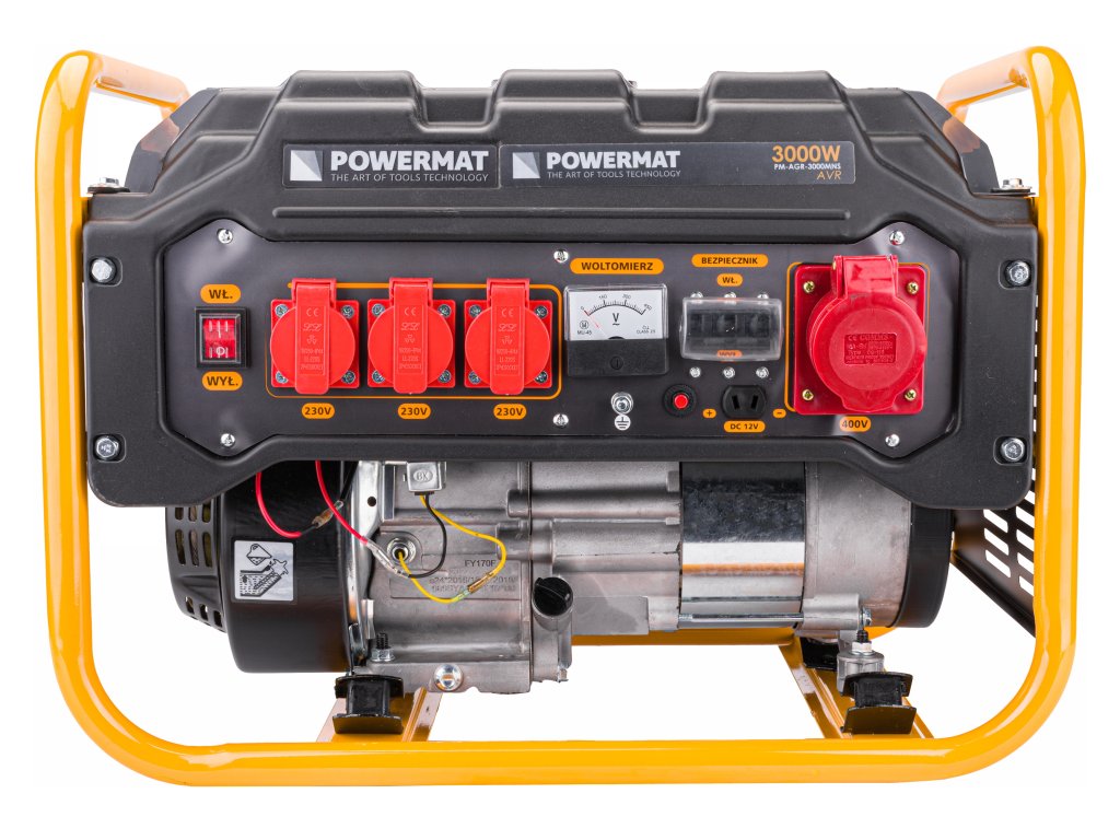Генераторът произвежда променлив ток с напрежение 230V (3 гнезда), 400V (1 гнездо) и постоянен ток 12V (1 гнездо). Идеално решение за липса на електрозахранване на открито. Оборудван е с волтметър и предпазители. Освен това има сензор за нивото на масло, който автоматично изключва двигателя при ниско ниво. Стартирането е ръчно – чрез въженце. Генераторът е подходящ за занаятчии, строителство и градина за работа с електроинструменти, помпи и осветление.