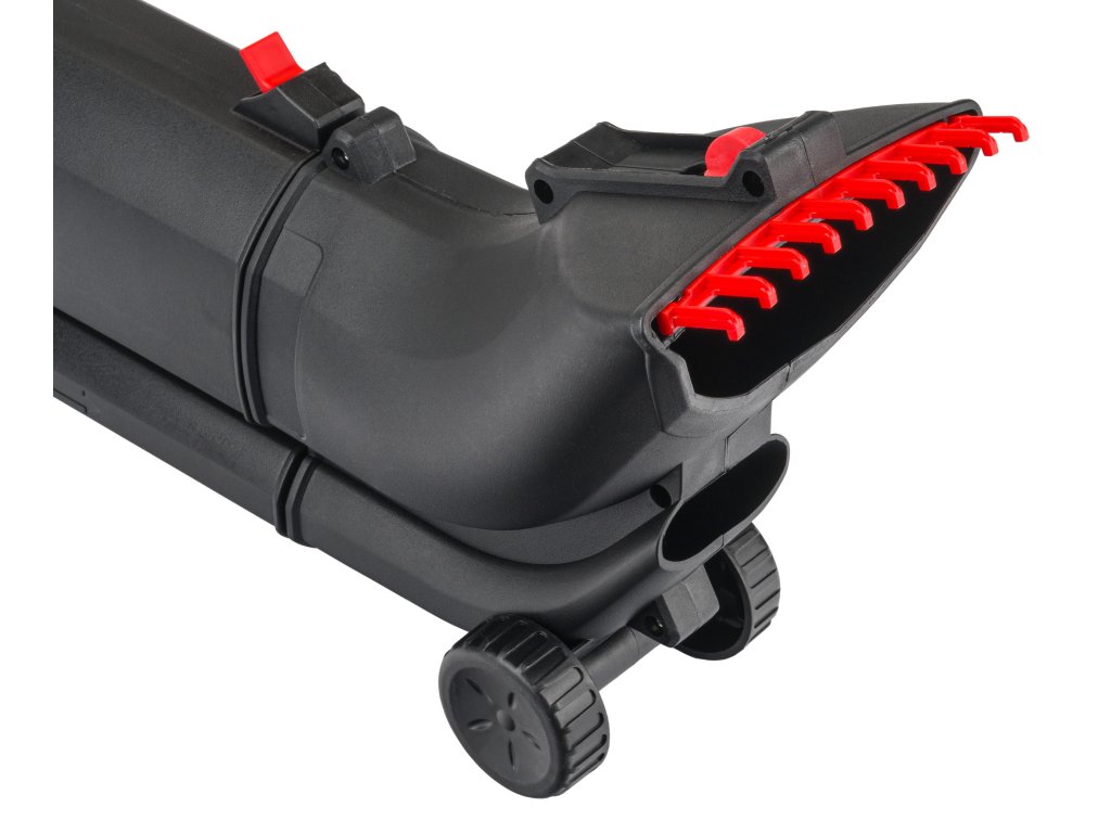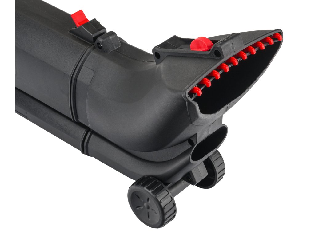 Колелца, позиционирани при изхода на въздуха, намаляват напрежението върху ръцете при духане или събиране на листа.