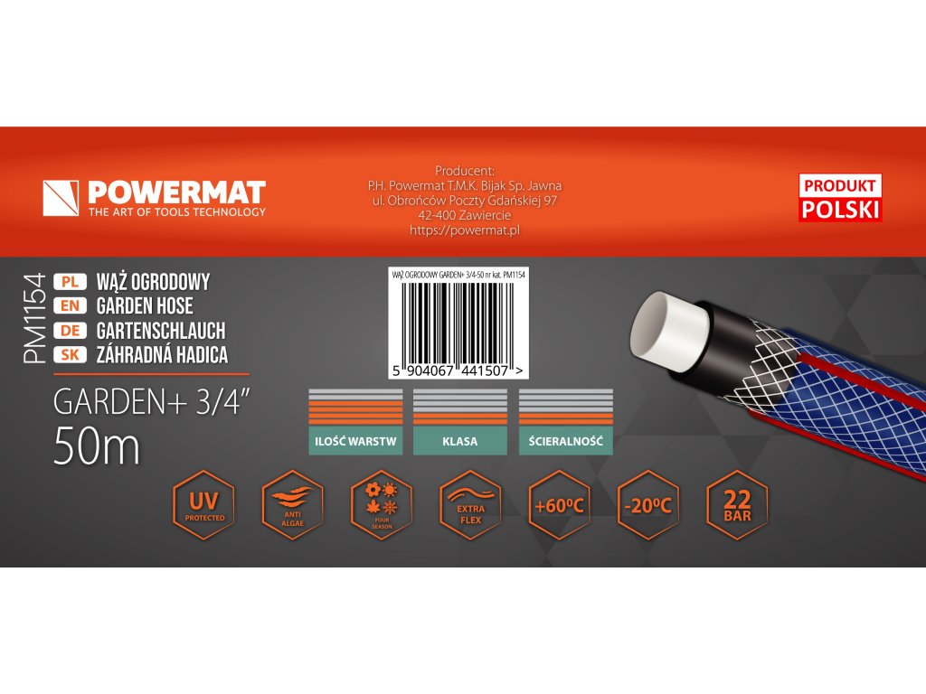 Описание: Висококачествен градински маркуч, произведен в Полша, отличаващ се с отлични материали, устойчиви на слънчева радиация и екстремни температури.