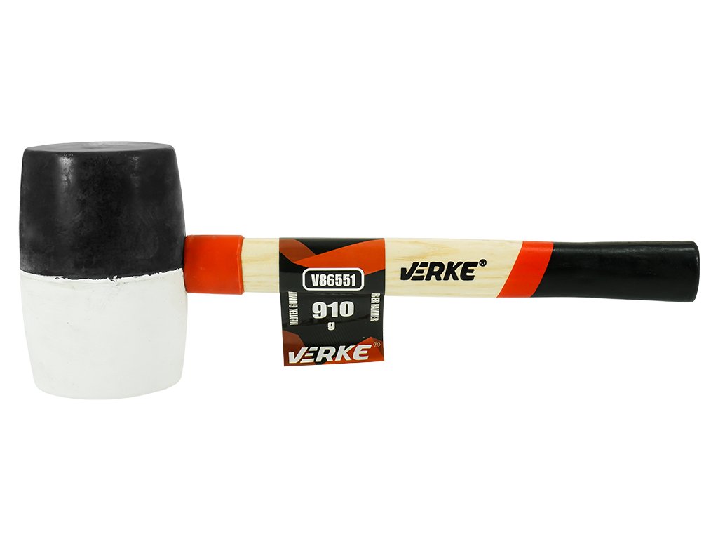Гумен чук, дървена дръжка 910 г VERKE V86551 е изработен от комбинация на черна и бяла гума с различна твърдост. Осигурен е с дървена, лакирана дръжка. Гуменото чукче е предназначено за монтажни работи във множество сектори. Особено полезно при полагане на настилки, монтаж на мебели и други дейности с чувствителни материали. Бялата гума не оставя следи върху материала. Устойчиво на влага. Тегло: 910 грама.