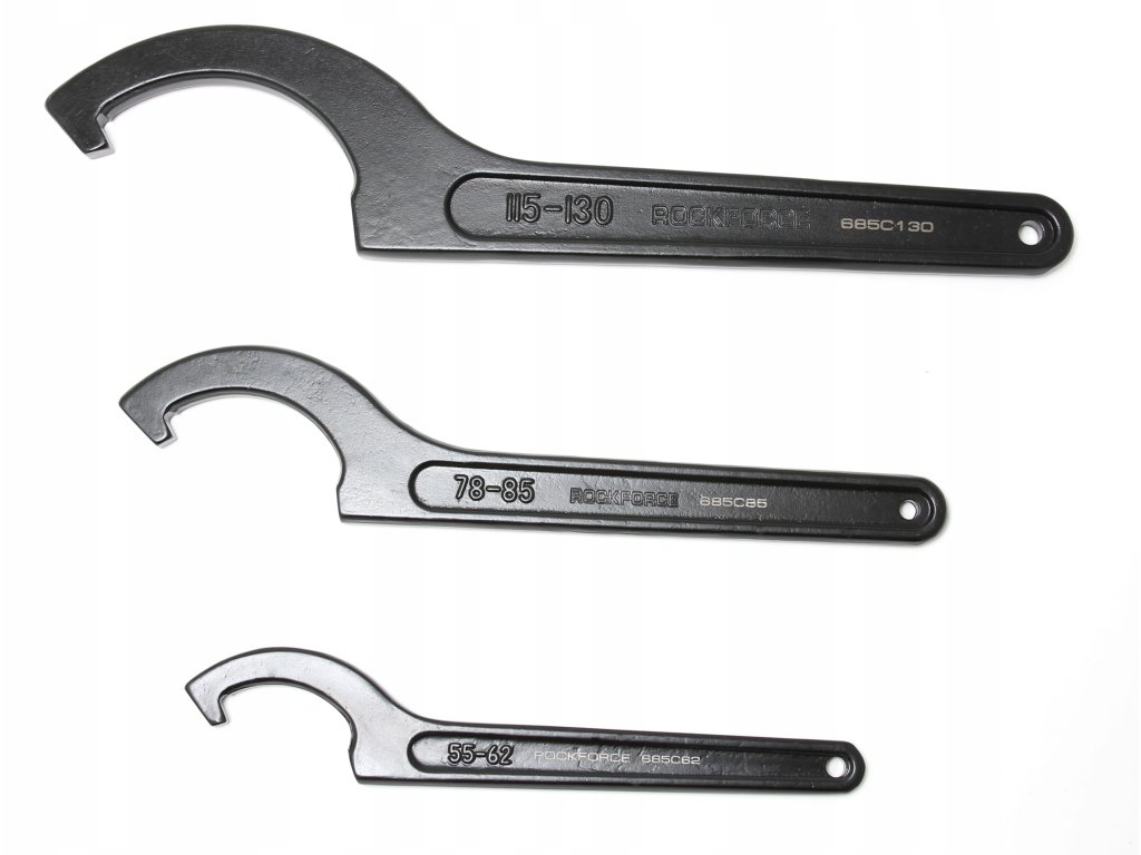 Ключове тип кука с върха на марката ROCK FORCE – тези инструменти се отличават с изключителна издръжливост и високо качество на изработка, благодарение на което работата дори с много износени резбови съединения е проста и лесна.