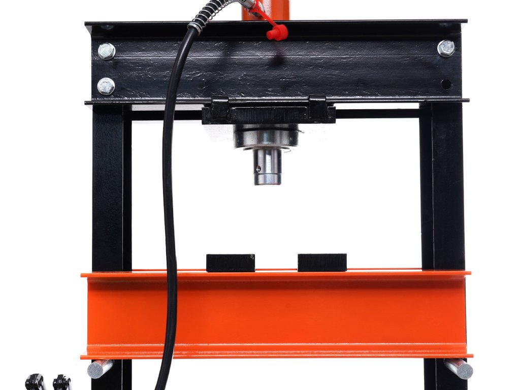 Хидравлична преса с означение KD318 от марката Kraft&Dele. Благодарение на силата на натиск от 20 т и здрава конструкция от конструкционна стомана, тя ще се справи дори с най-изискваните задачи във вашата работилница.