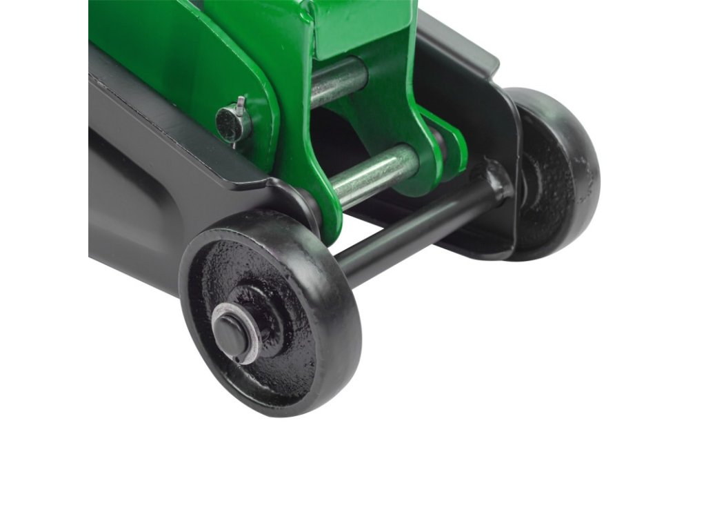 Крикът е оборудван с 4 колела, което го прави лесен за преместване. Благодарение на предпазния клапан, крикът отговаря на стандартите за безопасност.