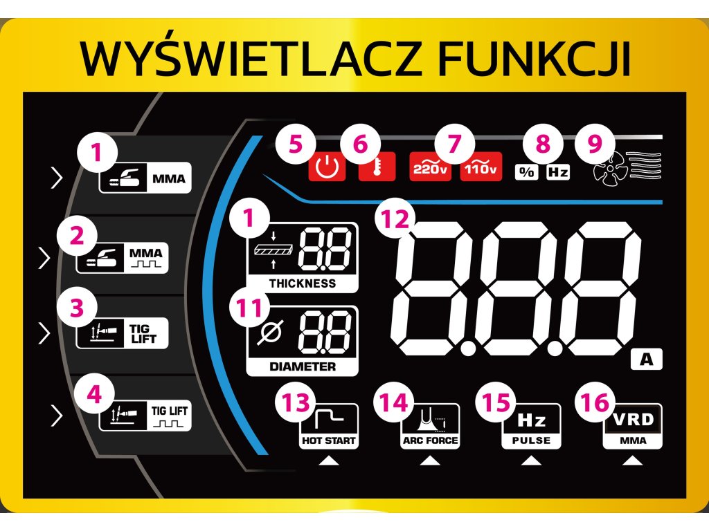 - Метод на заваряване: MMA | MMA PULSE | TIG-LIFT | TIG-LIFT PULSE