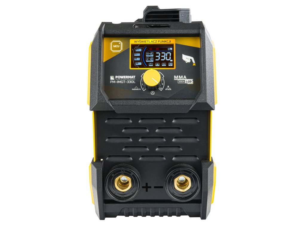 Модел PM-IMGT-330L е високопроизводителен инверторен електрожен, чиято конструкция се базира на модерни IGBT транзистори. Оборудван е с ясен LCD дисплей, който показва текущо зададения заваръчен ток.