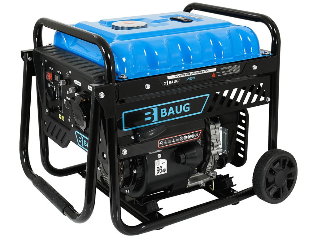 Инверторен генератор за ток 5500 W BAUG е независим източник на електрическа енергия, подходящ там, където няма достъп до електрическата мрежа. Идеален за строителни обекти, ваканционни къщи, градини, къмпинг и лагеруване. Подходящ също за захранване на котли и циркулационни помпи за отопление. Уредът се състои от алтернатор, задвижван от бензинов двигател.