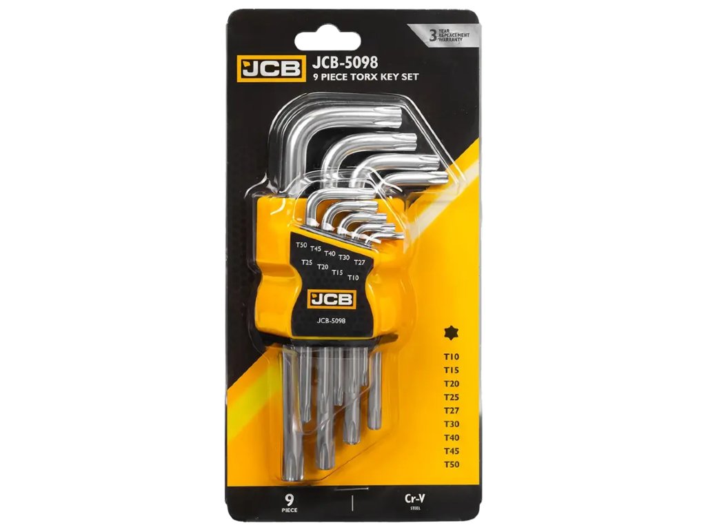 JCB 9-частичен комплект Torx ключове L-тип T10–T50, Cr-V