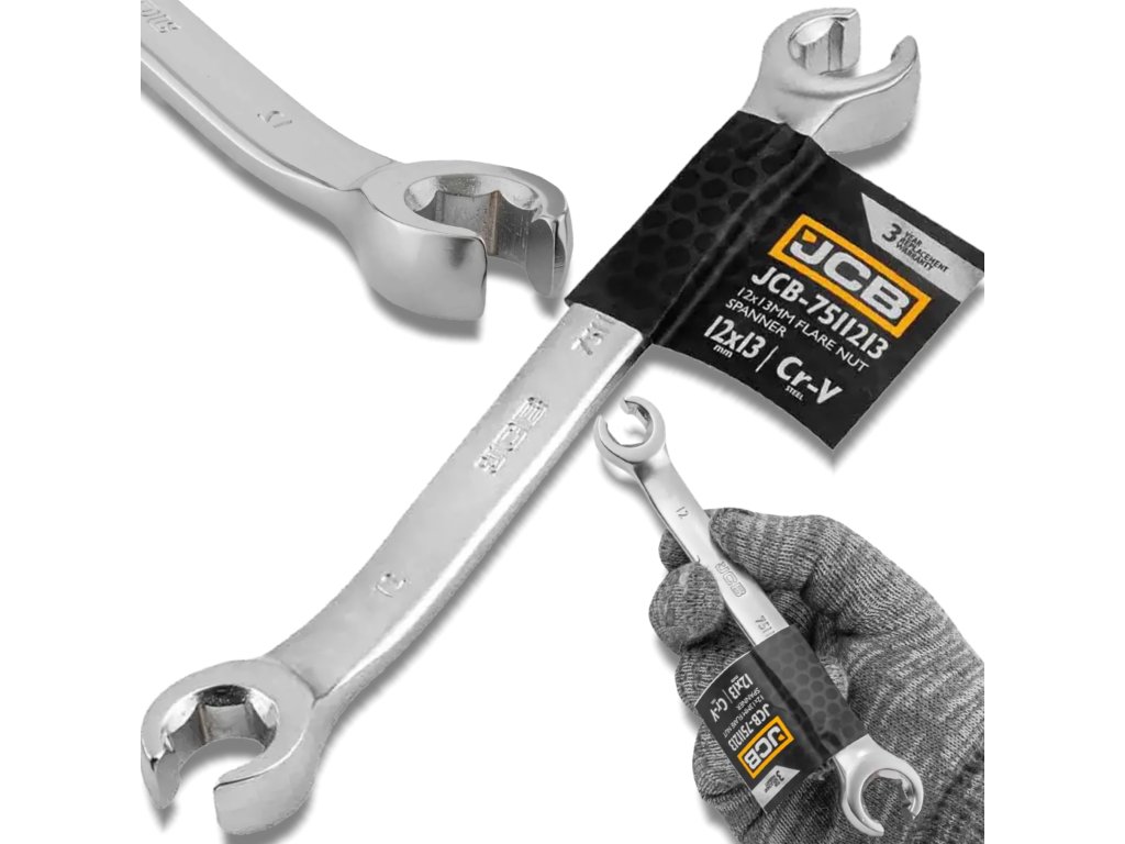 JCB разцепен звездогаечен ключ 12 x 13 мм, двустранен, Cr-V, 6-стенен