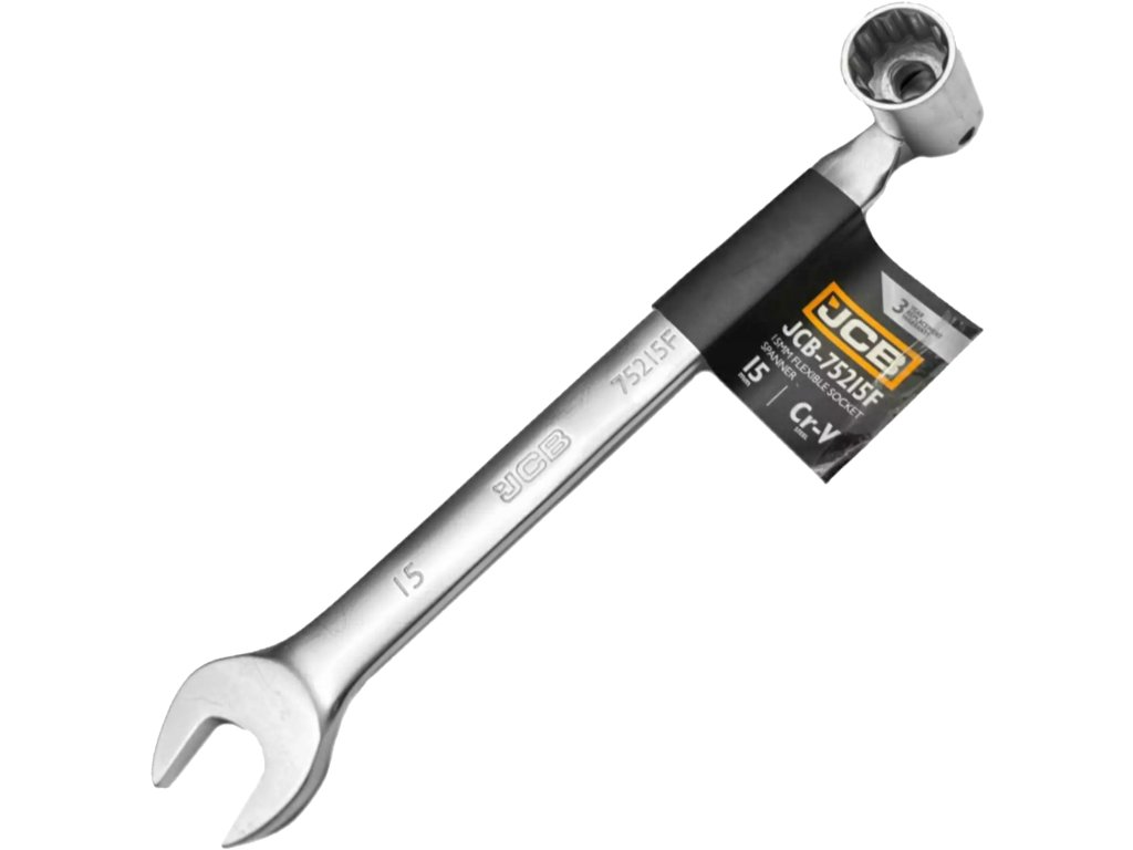 Ключ око-плосък с шарнир 15 мм от JCB съчетава прецизна изработка, изключителна издръжливост и висока функционалност, която ще оцени всеки механик, монтажник и майстор.
