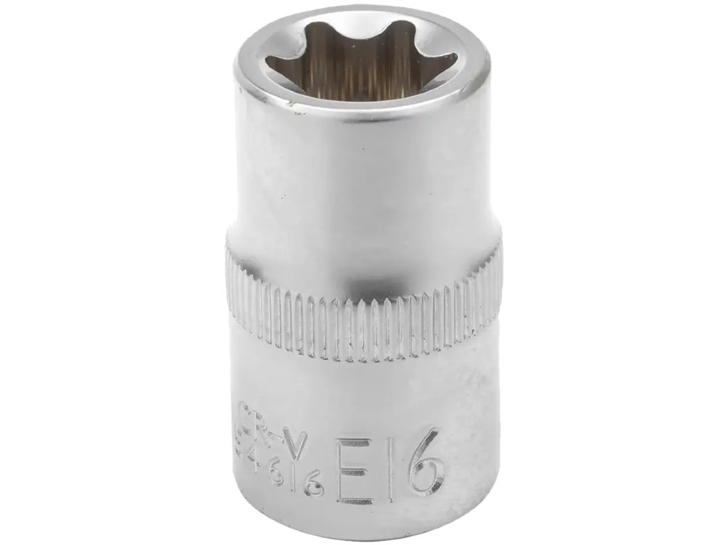 Глава с профил E16, 1/2” е надежден и издръжлив инструмент, предназначен за работа с външни Torx крепежни елементи. Благодарение на прецизната изработка, осигурява перфектно прилягане към винтове и гайки, като по този начин намалява риска от приплъзване и повреда на гнездото.