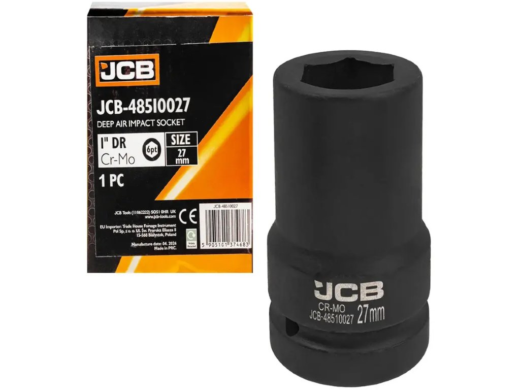 JCB дълбок ударен накрайник 1" 27 мм, 6-стенен, Cr-Mo