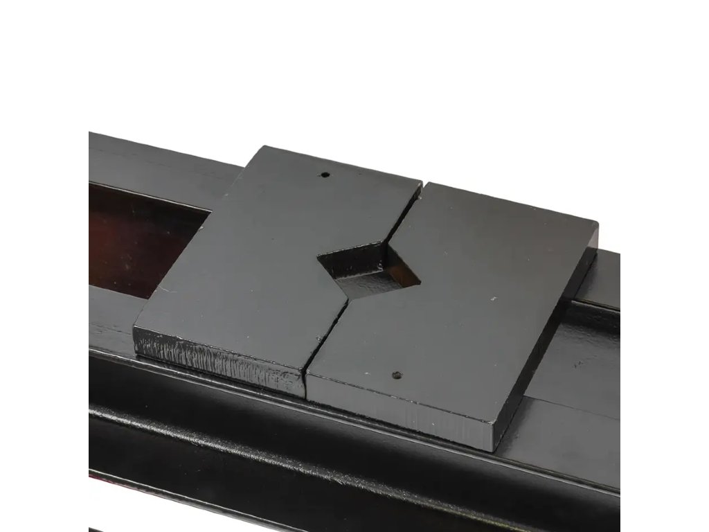 Здравата стоманена конструкция с напречни стабилизиращи плочи осигурява висока устойчивост на деформации, а регулируемата височина на работната маса позволява адаптиране на оборудването към различни типове части и конструктивни елементи.