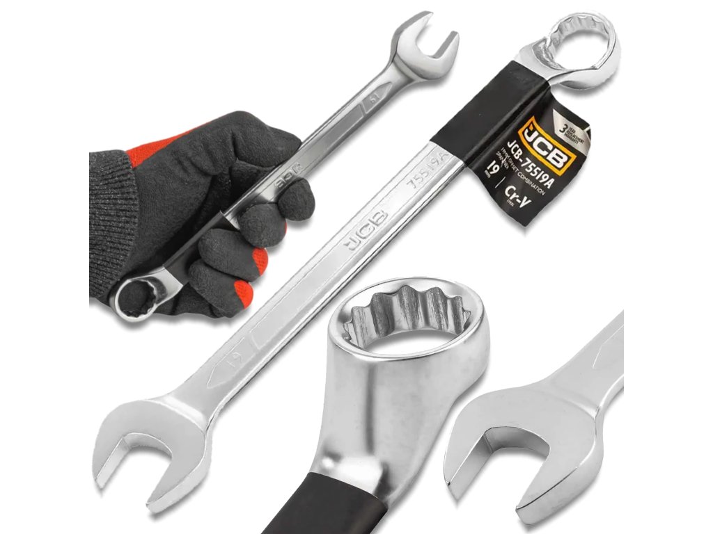 JCB комбиниран ключ 19 мм, огънат на 75°, Cr-V, двустранен