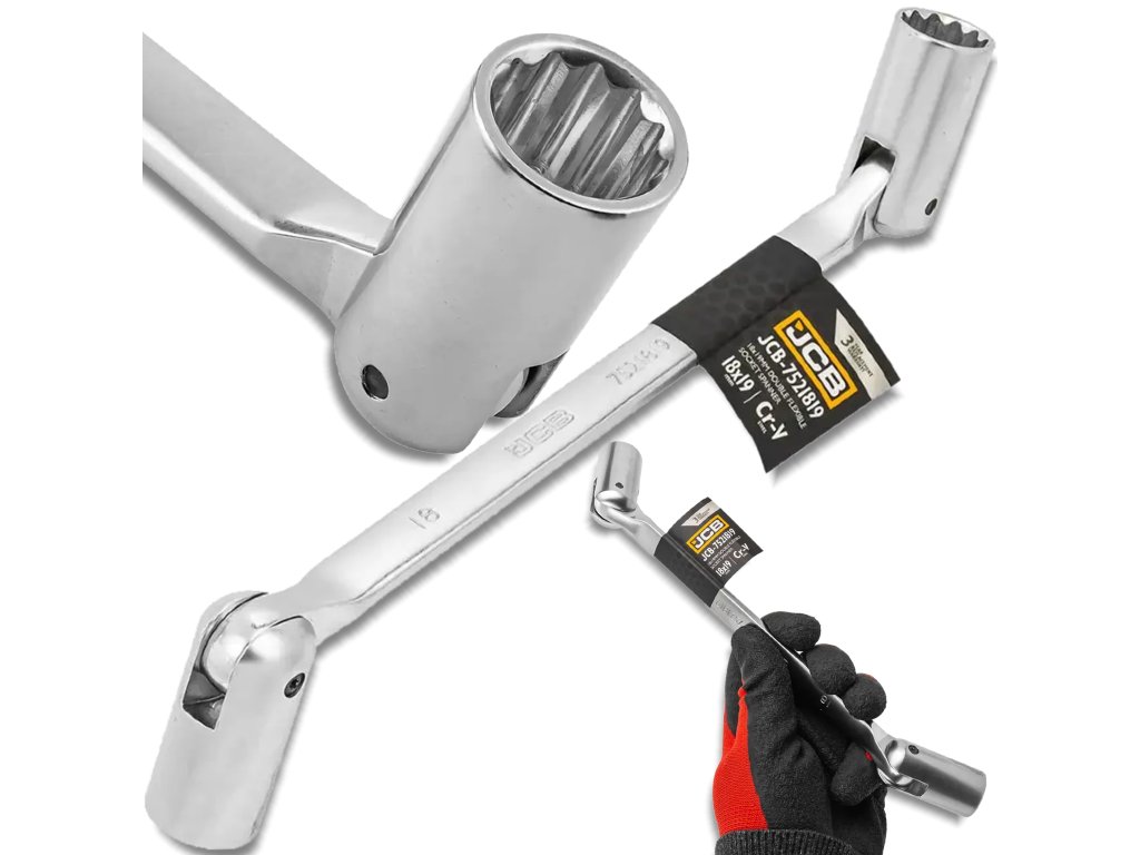 JCB накрайник с шарнир 18–19 мм, двустранен, 12-стенен, Cr-V стомана