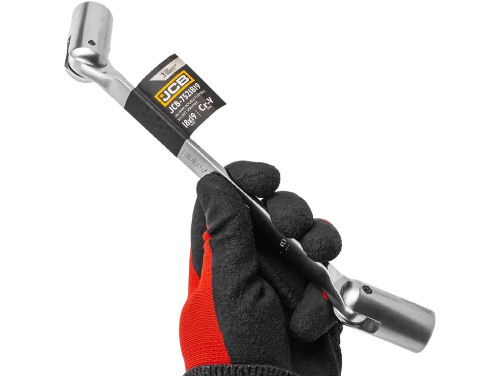 Двустранен шарнирен цоkъл ключ 18×19 мм е инструмент, предназначен за тези, които се нуждаят от комбинация от висока работна сила и възможност за работа в ограничено пространство. Неговата уникална конструкция с шарнирна глава на цоkъл ключа (ъгъл 180°) позволява свободно въртене в двете посоки и улеснява достъпа до винтове и гайки дори при най-трудни условия.