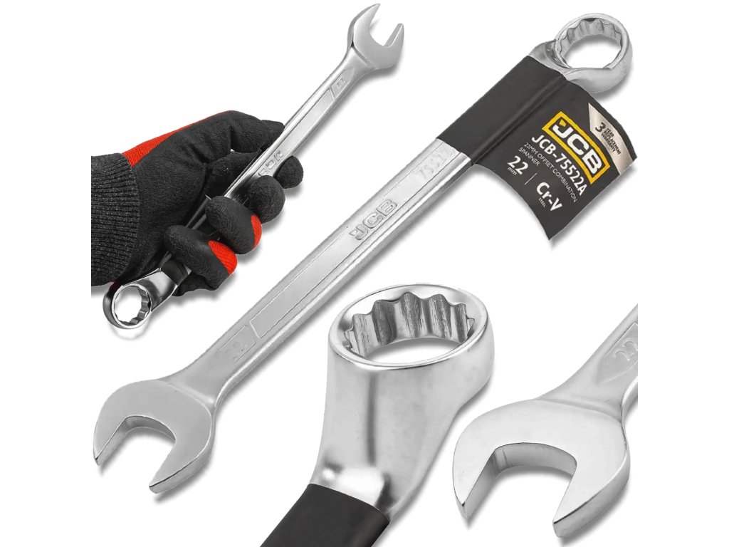 JCB двустранен комбиниран ключ 22 мм, огънат на 75°, Cr‑V стомана
